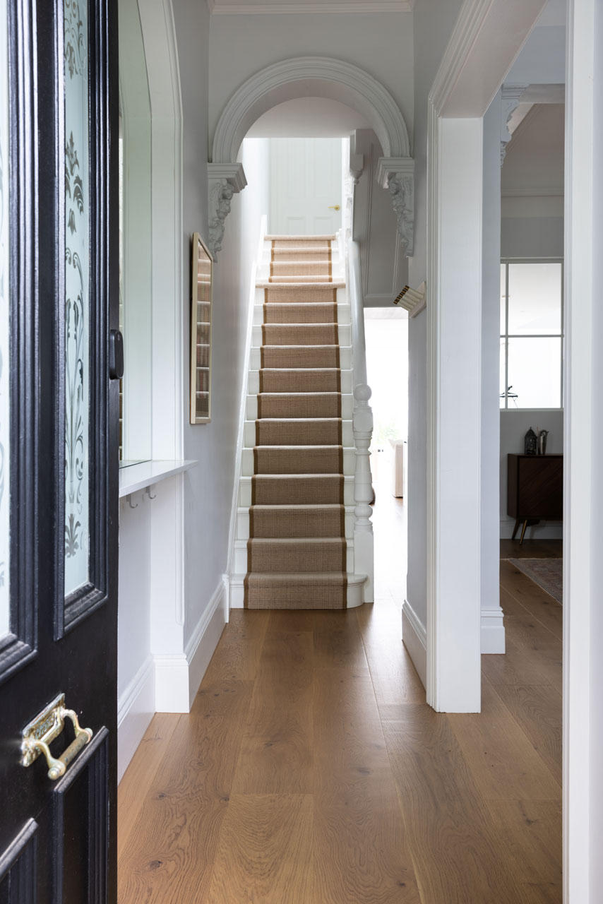 Our Toasted Oak flooring seen throughout this project, brings warmth and character to the interiors of the open plan informal living room opening expansively out to the courtyard garden.